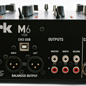 Ausgänge: 1 x RCA (Master), 1 x RCA (Booth), 1 x RCA (Record), 2 x XLR (L/R Balanced Out)